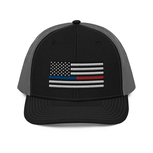 Red/Blue Line Flag Trucker Cap